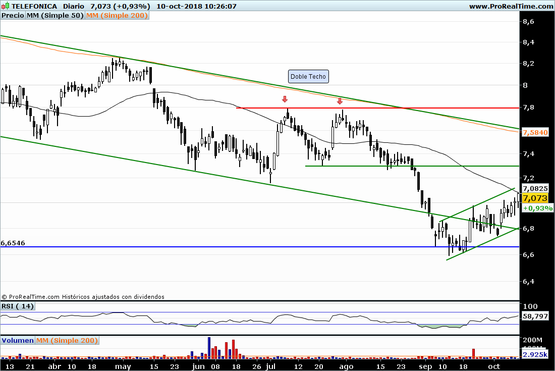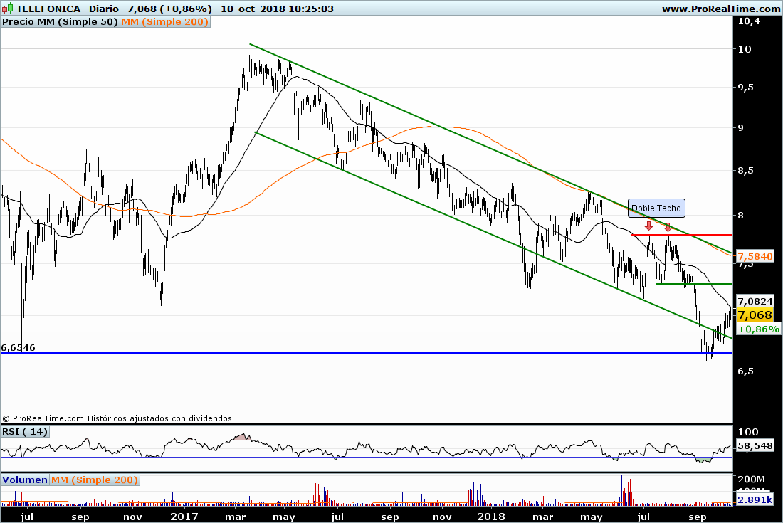 Desde el punto de vista del análisis gráfico la tendencia de Caixabank (ahora ya cotizando con Bankia absorbida) ha mejorado, se reordeno al alza en la zona de soporte de 1,50 euros (y mínimos históricos) y ha realizado 2 tramos al alza muy interesantes, tras el primero de ellos vimos 3 meses de consolidación por lo que solo puede calificarse de normal el parón de estas últimas semanas, de hecho si la primera corrección se llevo un 50 % de la subida previa no me extrañaría que esta segunda alcanzara el 38,2 % de corrección (nivel clave de Fiboncci) lo que podría llevarle a la zona de 2,40 euros donde existe un fuerte soporte.